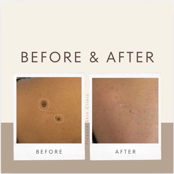 The freezing process causes the lesion to gradually fall off, revealing clearer skin overtime.